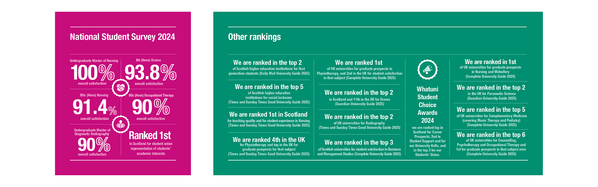 - 3rd of Scottish universities for our Nursing and Physiotherapy programmes; and