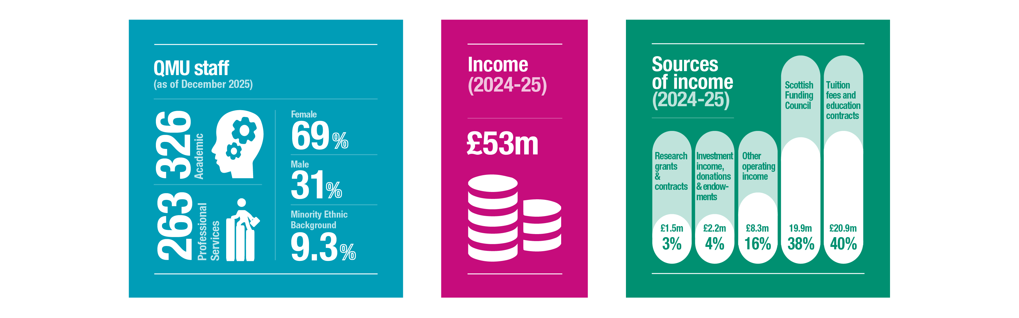 See below for some quick facts and figures about Queen Margaret University. From this page, you can also access our Statement of Accounts and our Strategic Plan.