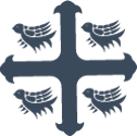 The martlet is a mythological bird used in heraldry and associated with learning. It is footless, symbolising its constant flight in search of knowledge. The cross represents the canonisation of Queen Margaret. |