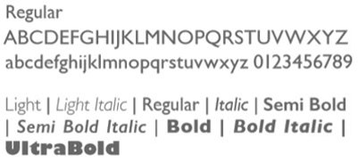 In corporate publications, Helvetica Neue is the chosen font for most publication body text due to its range of available weights.